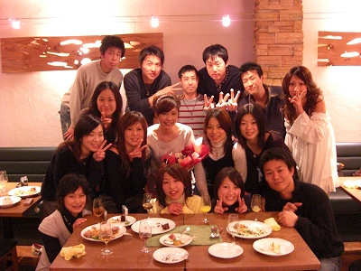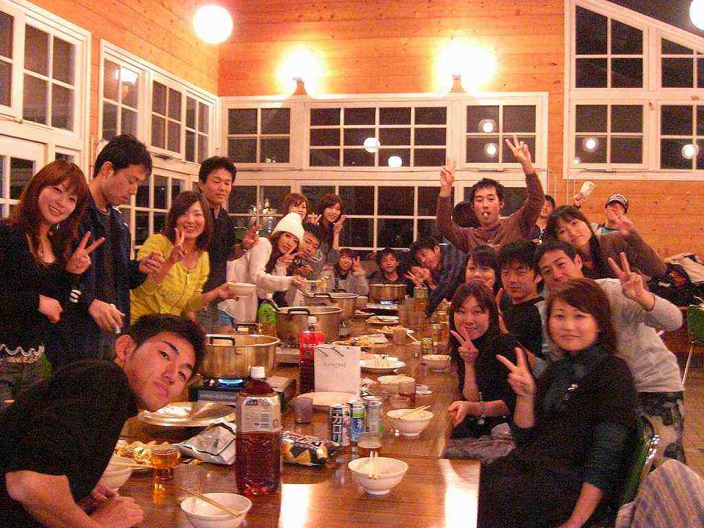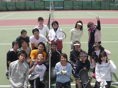 テニスの他、「合宿」、「スノボ」、「花見」、「忘年会」等々、イベントをして、親睦を図っています。
