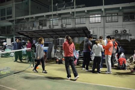 日曜日,祭日などは月1回都営のコートの練習と男女共に団体戦などに出ています。