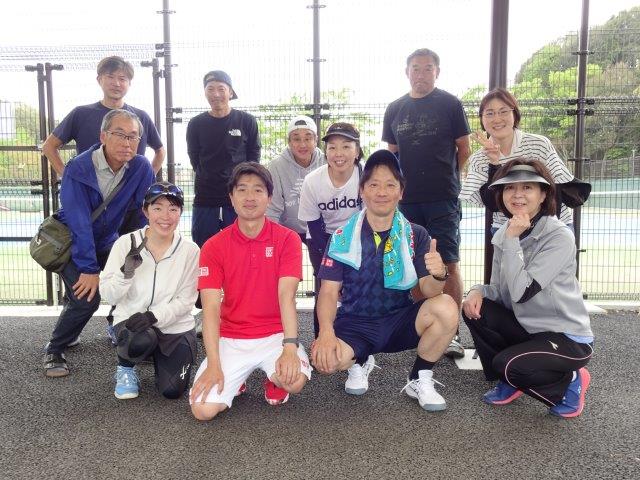 年齢は30代から60代まで、老若男女入り混じってアットホームな雰囲気の中、ダブルスの試合を中心に楽しくプレーしてます!!